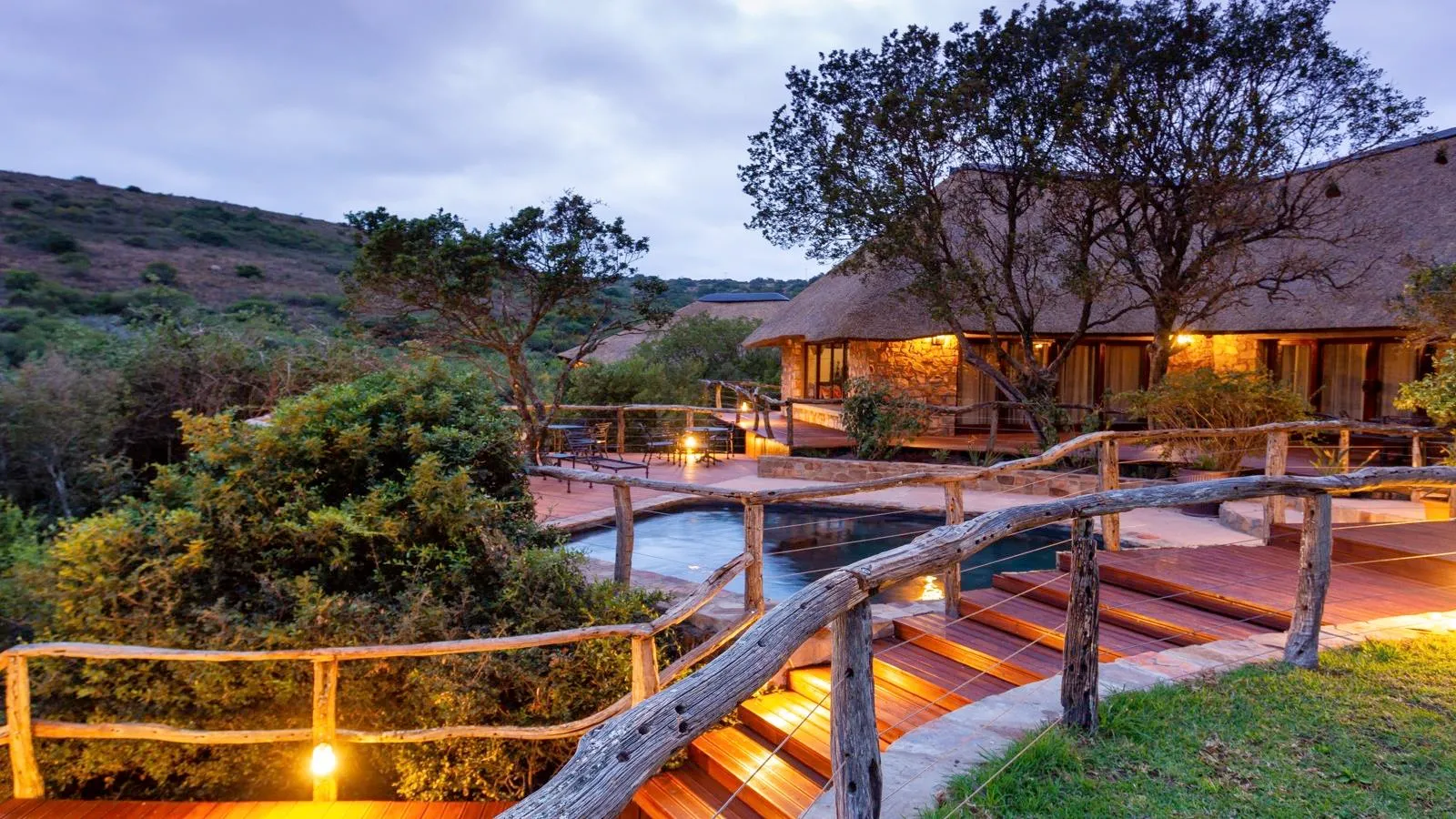 Relaxed Pan-African style and a friendly atmosphere welcome guests to Mark’s Camp at Lalibela Game Reserve. Tucked into the bushveld on a hillside overlooking a waterhole, the stone and thatch lodge is perfectly placed for Big Five game-viewing in this family-owned private game reserve in South Africa’s malaria-free Eastern Cape.